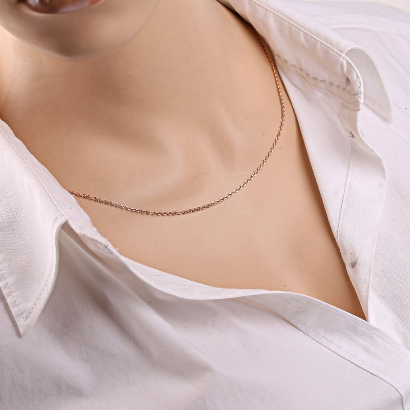 Arany lánc 585 vörös aranyból. Elegáns és nőies nyaklánc gyémántcsiszolású horgonyfonatból! A láncszemek eredeti kidolgozásának köszönhetően a lánc dús megjelenésű, és a napon csillogva és szikrázva vonzza mások lelkes tekintetét.