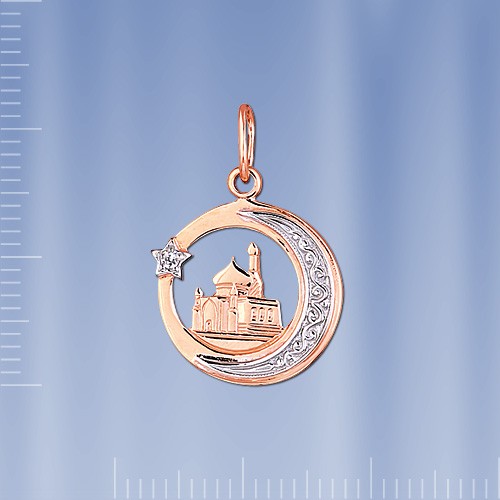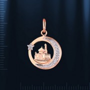 Medál orosz vörös/fehér aranyból 585°. A medál Fianite ¢ 1 mm-es díszítéssel. Magasság füllel kb 22 mm