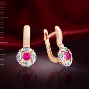 Orecchini con diamanti, rubini e corindone. Oro 585