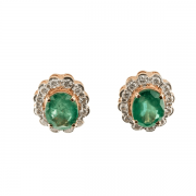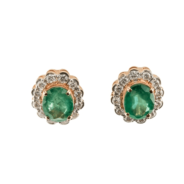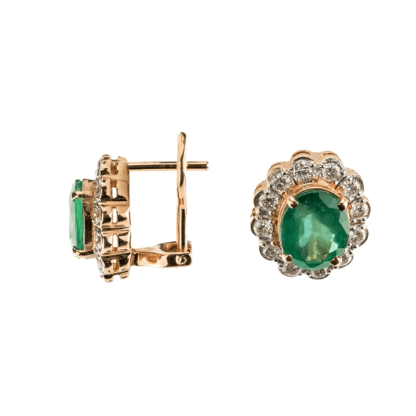 Ohrringe aus Rotgold mit Smaragden und Diamanten.