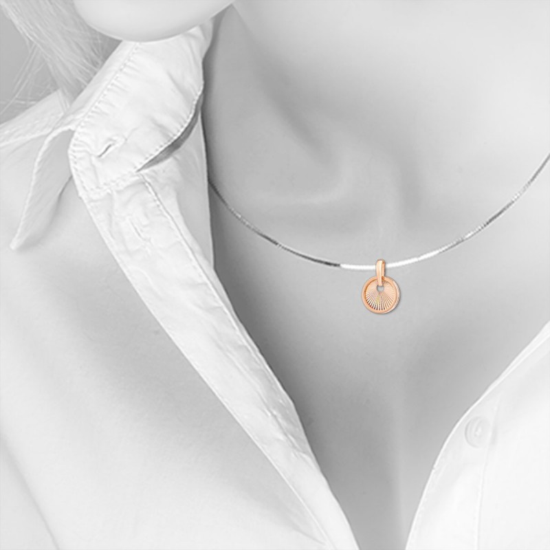 Ciondolo in oro rosso 585. Il ciondolo in oro rosso russo 585 con taglio a diamante è un gioiello per tutti coloro che riconoscono la bellezza nei minimi dettagli. La calda lucentezza dell'oro e lo scintillante gioco di luce della superficie diamantata conferiscono al ciondolo un'eleganza leggera, quasi fluttuante, che irradia un'atmosfera delicata e romantica.