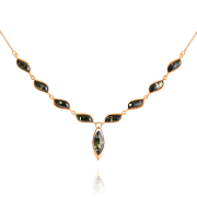 Elegante collana in argento 925 placcato oro, decorata con ambra verde, con questo fantastico "pezzo di sole", ti delizierà e delizierà grazie alla sua bellezza! Un'occasione unica per sottolineare la propria individualità, per trasmettere l'immagine di femminilità, sole e tenerezza.