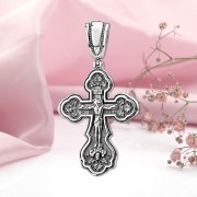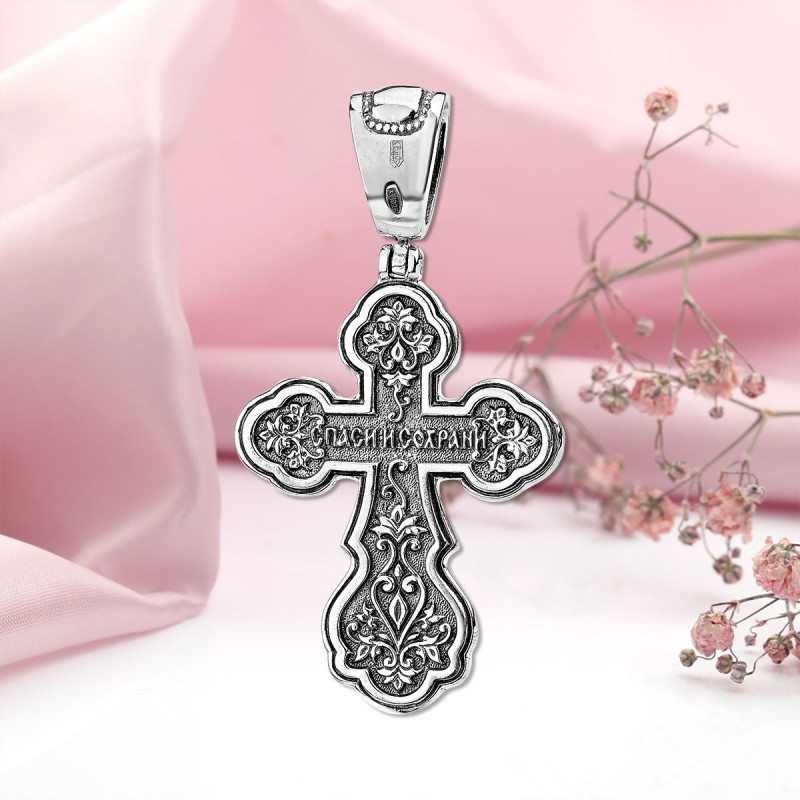 La croce al petto di Silber con un crocifisso fatto di argento 925 annerito! L'iscrizione è incisa sul retro: "Salva e mantieni". Non si gratta quando si indossa.