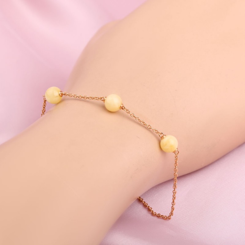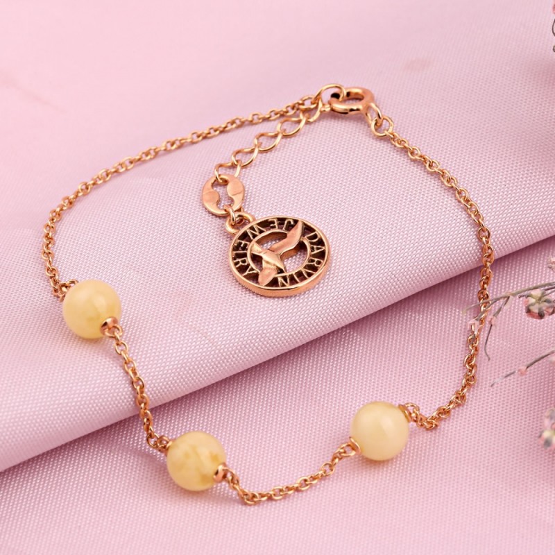 Un festoso braccialetto femminile realizzato in argento 925 placcato oro decorato con ambra reale, con questo straordinario "pezzo di sole", incantato e accattivante con la sua bellezza, ti delizierà ancora e ancora! Un'occasione unica per enfatizzare la tua individualità, trasmettere l'immagine di femminilità e tenerezza. Una bellissima combinazione di oro scintillante e ambra solare dona al tuo look un'atmosfera festosa!