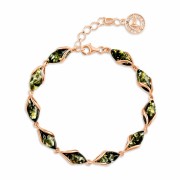 Un braccialetto femminile festivo fatto di argento 925 decorato con ambra, con questo fantastico "pezzo di sole", che suona in tutte le sfumature di verde, incantevole e impressionante con la sua bellezza, ispirerà sempre! Un'opportunità unica per enfatizzare la tua individualità, per trasmettere l'immagine della femminilità e della tenerezza. Una bella combinazione di oro scintillante e soleggiata ambra dona al tuo look un'atmosfera festosa!