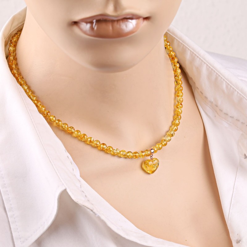 Collier d'argento dorato con ambra. Un pozzo fatto in argento 925 placcato in oro decorato con ambra, in tutte le sfumature di colore del miele e cuore ambra romantico come seguace.