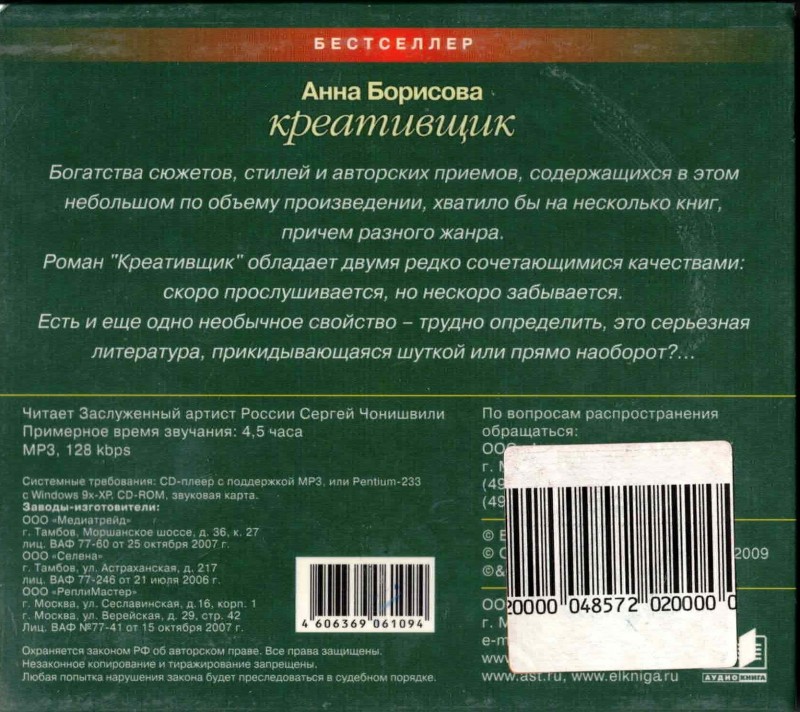 | : | Russische Hörbücher sind nicht für Kinder unter 3 Jahren geeignet. Erstickungsgefahr durch verschluckte Kleinteile, Schnittgefahr durch scharfe Kanten. Vermeiden Sie den Kontakt mit Wasser, Chemikalien, Reinigungsmitteln oder Parfums/Kosmetika, um Verfärbungen und Schäden an der Oberfläche zu vermeiden. |