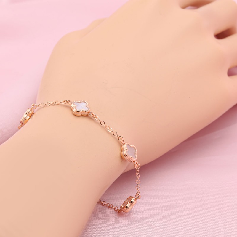La sottile catena Belcher giace così leggera sulla pelle, come se fosse sfiorata da un caldo raggio di sole. I piccoli elementi a quattro petali realizzati in madreperla scintillante sembrano minuscoli riflessi di luce: ognuno di essi ricorda lo splendore del cielo mattutino, le nuvole sottili, la tenerezza di un tocco silenzioso.