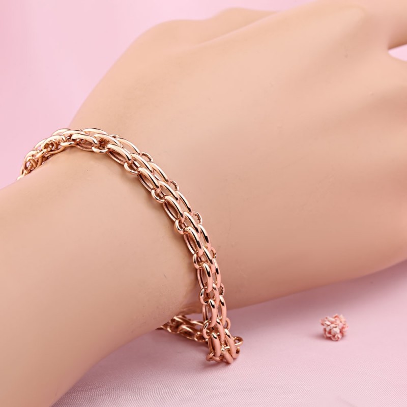 Bracciale in oro Oro russo 585 in Germania. L'eccellente bracciale è realizzato in classico oro rosso 14 carati utilizzando speciali tecnologie avanzate, che consentono, nonostante l'apparenza di volume, di ottenere un peso relativamente basso e quindi un costo relativamente basso. Questo prodotto metterà in risalto la tua elevata raffinatezza e il tuo profondo senso dello stile! Varietà alla moda di tessitura di ancoraggi.