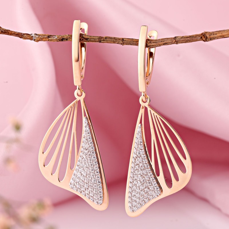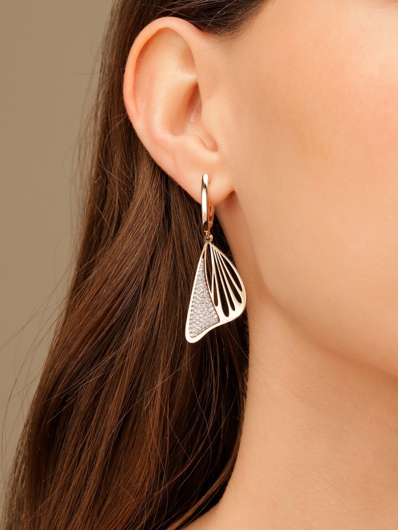 Orecchini in oro pendenti 585. Questi orecchini realizzati in oro rosso 585 sembrano una raffinata composizione di forma, luce e spazio. La delicata silhouette a forma di foglia si sviluppa in linee delicate e conferisce al gioiello una leggerezza elegante, quasi fluttuante.