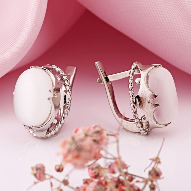 Orecchini d'argento 925º Acquista in Germania. Orecchini d'argento con bellissimo ulexit. Rhodium -placcato! Tali orecchini sono una bella aggiunta ad ogni outfit. Bellissimo regalo per il suo amante, dà i suoi sentimenti indimenticabili!