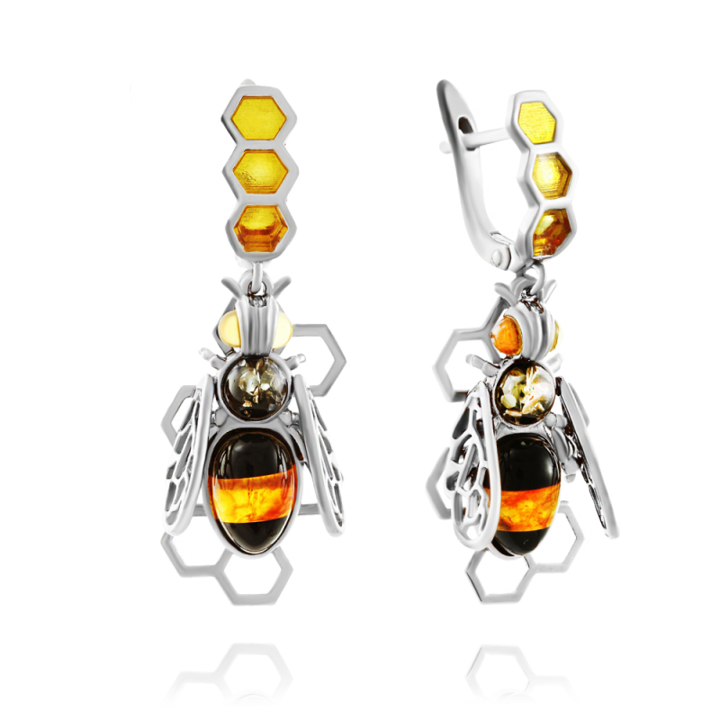 Bellissimi orecchini a forma di api realizzati in argento 925 campione (placcato rodio! + smalto), con ambra, sorprendente "pezzo di sole" in diversi colori! Un'occasione unica per sottolineare la propria individualità, per trasmettere l'immagine di femminilità, sole e tenerezza.