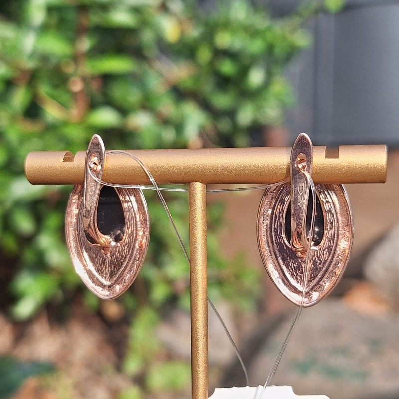 Bellissimi orecchini realizzati in campione d'argento 925, con ambra verde, sorprendente "pezzo di sole" e placcatura in oro rosso! Un'occasione unica per sottolineare la propria individualità, per trasmettere l'immagine di femminilità, sole e tenerezza.
