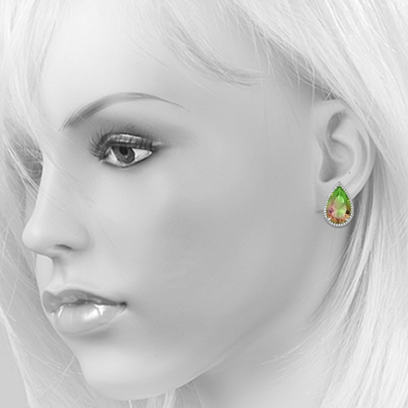 Affascinanti orecchini realizzati in argento sterling 925, decorati con scintillanti zirconi e sultanite insolitamente bella.