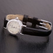 Elegante orologio da donna realizzato in argento 925°. La dimensione del quadrante ¢ 13,0 mm. Bracciale (lunghezza 22,0 cm): vera pelle.
