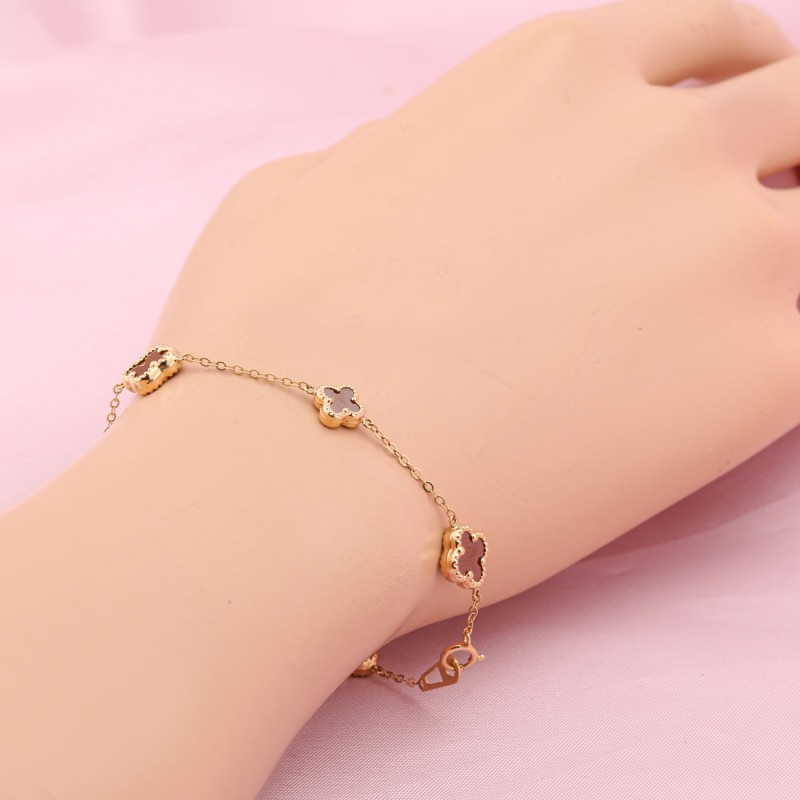 Bracciale in oro, oro giallo, agata. Bracciale in oro giallo con agata marrone. Questo elegante bracciale con intarsi in agata marrone unisce il calore naturale della pietra all'elegante lucentezza dell'oro giallo. I tenui toni marroni dell'agata creano un'aura armoniosa e calma, mentre i delicati elementi a quattro foglie conferiscono al gioiello un carattere moderno e allo stesso tempo sofisticato.