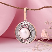 Ciondolo d'argento con perla di perle d'oro. Un rimorchio mozzafiato di 375 in oro e 925 argento sterling con inserti di zirconia scintillante e perle da riproduzione! La combinazione di queste incantevoli pietre di diverse dimensioni conferisce al prodotto un aspetto unico e affascina l'occhio. Questo sostenitore sottolineerà la tenerezza, la femminilità e il fascino del suo proprietario!