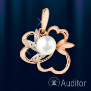 Un bellissimo pendente in oro realizzato in solido oro rosso russo/oro bianco 585 con perla coltivata e zirconi. Il diametro della perla è di circa 6,0 mm; La controversia del pendente è di circa 18 mm, l'altezza con occhiello è di circa 25 mm.