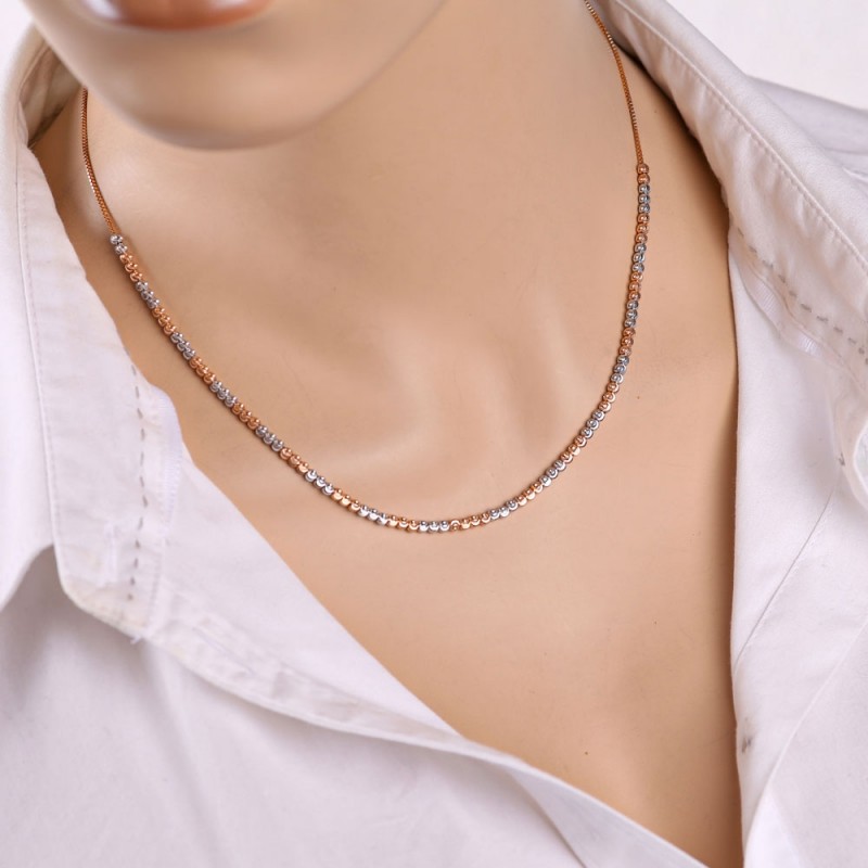 Una catena affascinante realizzata in oro bianco/rosso 585. Le maglie della catena brillano e brillano nei raggi di luce! Taglio diamante!