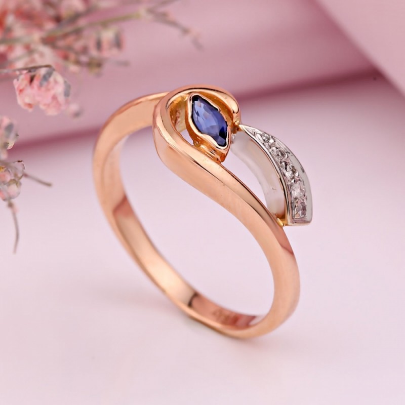 Gredzens ar briljantiem sarkanā zelta baltā zelta safīra. Zelta gredzens ar dimantiem un safīru. Krievijas zelts Vācijā. Gredzens ir izgatavots no 14k Krievijas sarkanā zelta ar briljantu, safīra un baltā zelta akcentiem. Šis gredzens lieliski papildina stilīgas sievietes tēlu, kura mīl mainīt savu izskatu. Izteiksmīgs un izsmalcināts gredzens ir piemērots visu vecumu sievietēm, kuras novērtē interesantu dizainu un nevainojamus akmeņus. Baltais zelts īpašā veidā izceļ dimantu skaistumu. Protams, katra sieviete sapņo par tik neaizmirstamu un iedvesmojošu dāvanu!