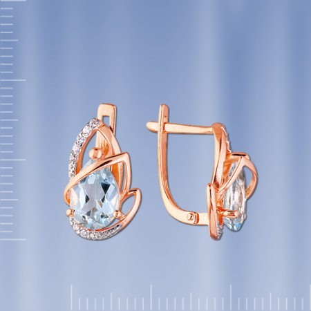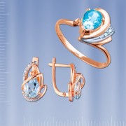 Komplekts no krievu sarkanā baltā zelta 585° ar topāzēm, cirkonija oksiju sastāv no gredzena un auskariem ar drošu aizdari, kas kalpo mūžīgi.