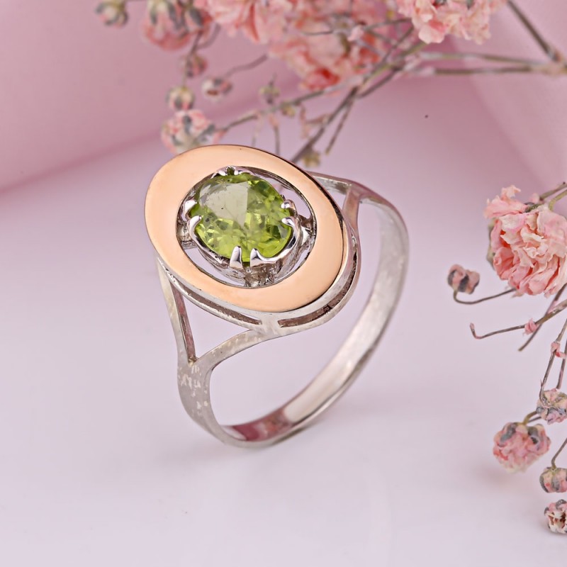 Sudraba komplekts ar zeltu un hrizolītu. Burvīgs sudraba komplekts, kas sastāv no auskariem un gredzena, ar ieliktņiem no neticami skaista krizolīta. 925 sudraba un 375 zelta. Brīnišķīgs romantisks papildinājums jūsu izskatam! Pārklāts ar rodiju!