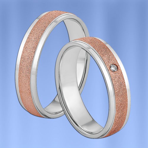 Divu toņu gredzens no sarkanā un baltā zelta 585° (matēts / spīdīgs) ar dimantu (1 x 0,02 ct)