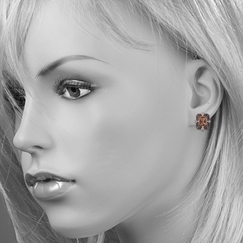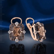 Eleganti auskari no apzeltīta 925 sudraba, dekorēti ar cirkoniju, nano kristālu un dūmu kvarcu.
