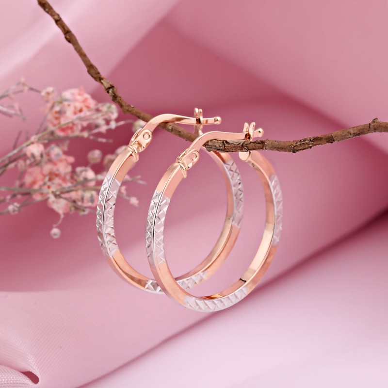 Krievu zelta 585 zelta Kongo auskari 24 mm bicolor. Eleganti stīpiņu auskari no 585 sarkanā zelta ar baltā zelta akcentiem pasvītro tavu sievišķību un grāciju.