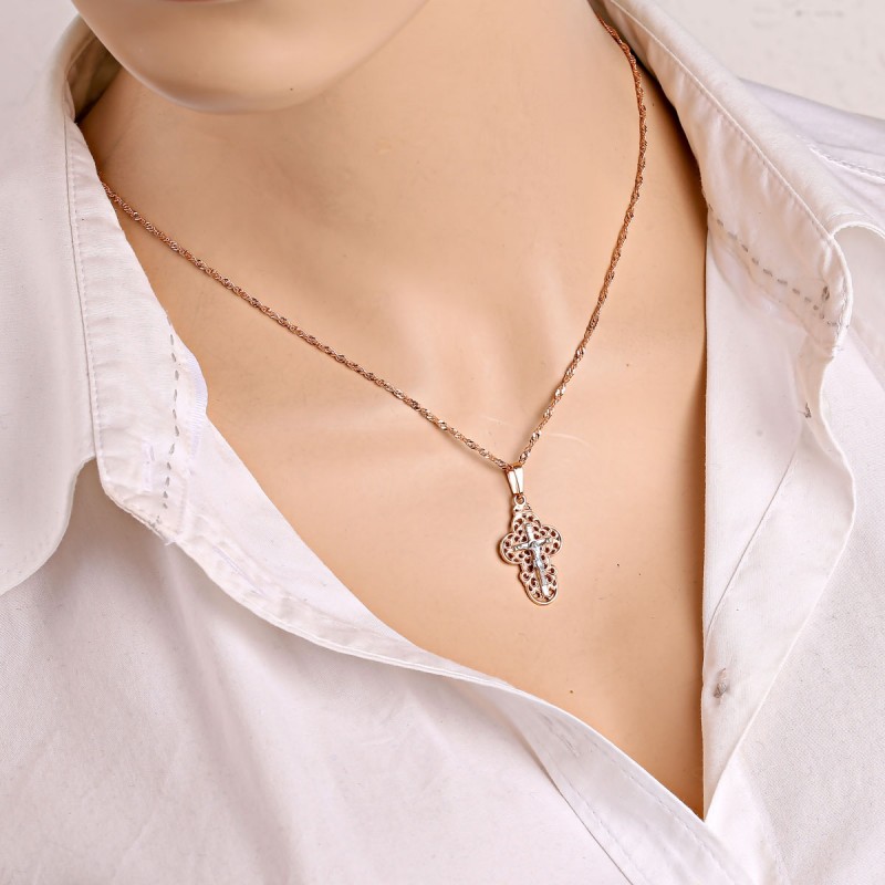 Sarkanais zelts ir silta, maiga krāsa, kas uz ādas izskatās īpaši eleganta. Kombinācijā ar baltā zelta elementiem tiek radīts izsmalcināts kontrasts un smalks spīdums. Šī krāsu kombinācija uzsver krusta līnijas un dod rotaslietu dziļumu un modernitāti. Tas ir piemērots gan ikdienas lietošanai, gan svētku gadījumiem.
