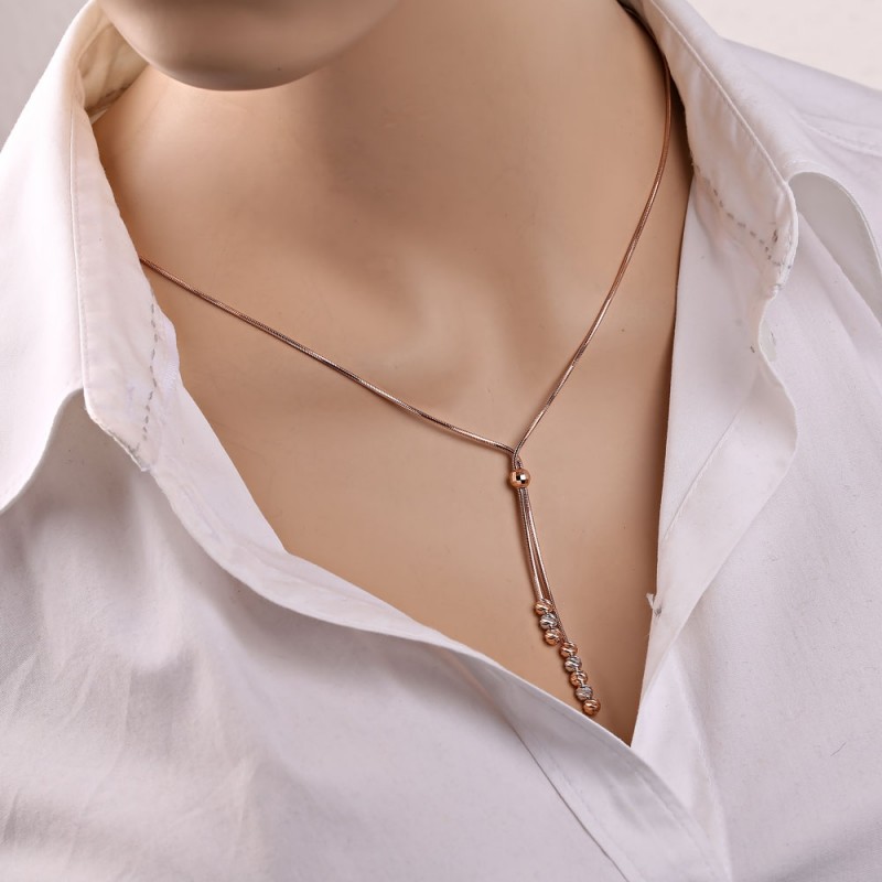 Eleganta un sievišķīga kaklarota klasiskā “čūskas” pinumā no 18ct baltā/rozā zelta! Produkts izskatās bagātīgs un piesaista apkārtējo apbrīnas pilnus skatienus, mirdzot un dzirkstot saulē. Dimanta griezuma bumbiņas no baltā un sarkanā zelta karājas kā kuloni ķēdes galos. Šis produkts izcels jūsu augsto izsmalcinātību un dziļo stila izjūtu.