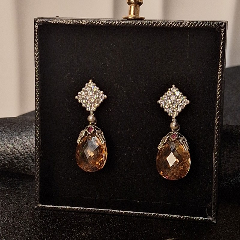 Ievietot : 1 citrīna pilieni 16,0 х 12,0 mm; Cirkonija Ø 2,0 mm; Rubins Ø 2,0 mm