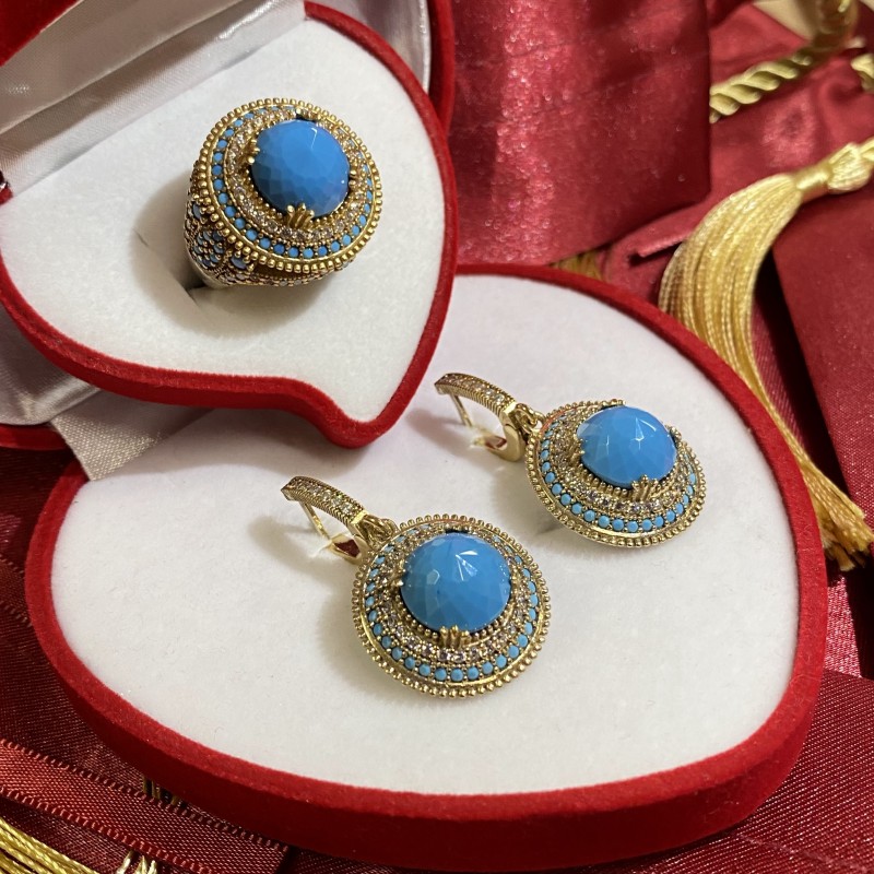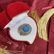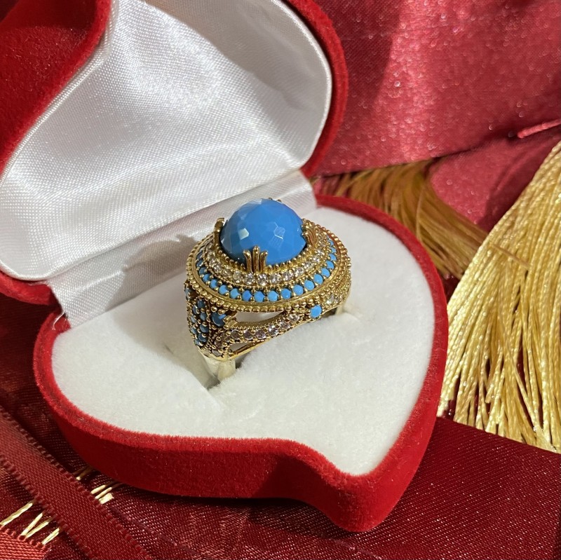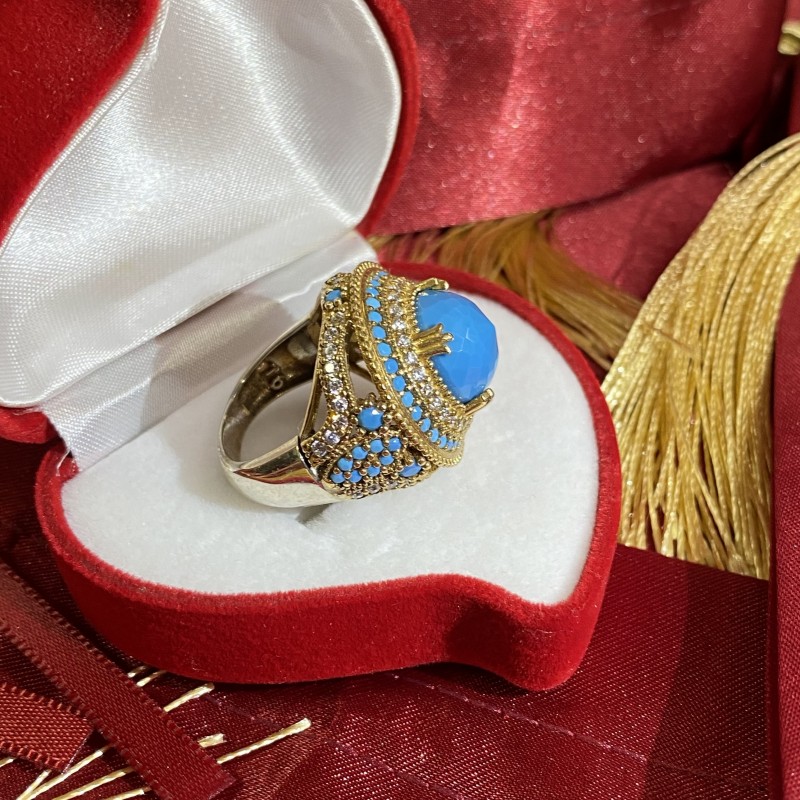 Apburošs, smalks gredzens ar burvīgu tirkīzu un cirkoniju skaistā sudraba rāmī, kas izgatavots no apzeltīta 925 sudraba.