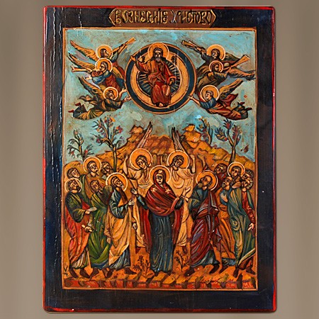 *используется особая система изображения пространства (так называемая «обратная перспектива», некоторые лица или предметы, изображённые на первом плане, по размерам могут быть значительно меньше тех, которые изображены за ними, это объясняется тем, что на иконе самое главное всегда обозначается более крупными размерами.)