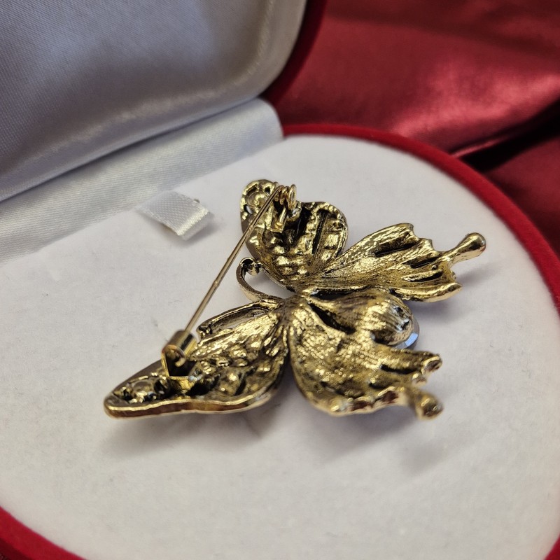 Een charmante broche van aluminium, versierd met sprankelende zirkonia en opaal. Broches met zirkonia benadrukken niet alleen de schoonheid en gratie van de drager, maar zijn ook een prachtige aanvulling op elke outfit. Deze decoratie heeft een missie om de helderste en hoogste gevoelens over te brengen aan de eigenaar! Nikkelvrij!