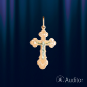 Kruis hanger met Crucifix Russisch goud 585 in Duitsland, orthodox. De Christusfiguur is gemaakt van witgoud 585, het kruis is gemaakt van rood goud 585 met een gegraveerd patroon. Op de achterkant van het kruis wordt een beschermend gebed "gered en bewaard" gegraveerd. Aan de bovenkant van het kruis is er een ring voor een koord of ketting. Krassen niet bij het dragen.