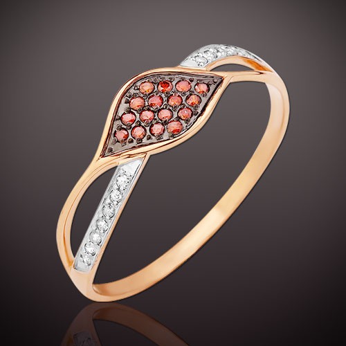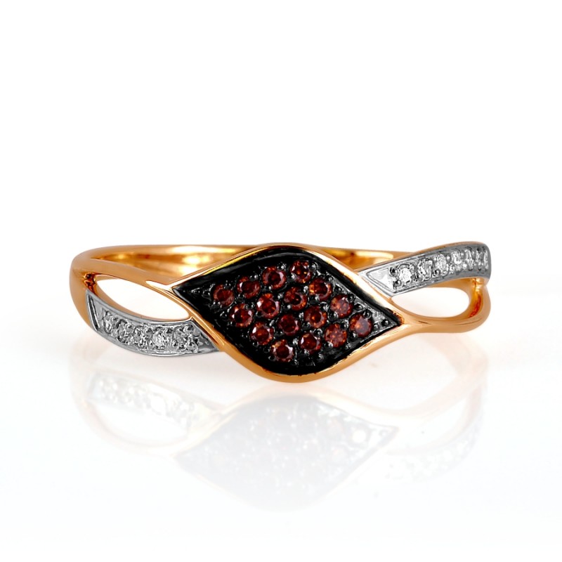 Ring gemaakt van rood/wit goud 585° versierd met 12 briljant geslepen diamanten 17 0,041 Ct.2/3; 16 briljant geslepen diamanten (bruin) 57 0,079 Ct.2/3