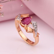 Gouden ring met diamanten en robijn. Russisch goud in Duitsland. De ring is gemaakt van 14k Russisch roodgoud met diamanten, robijn en witgouden accenten. Deze ring is de perfecte aanvulling op het imago van een stijlvolle vrouw die graag haar uiterlijk verandert. De ring is expressief en verfijnd en geschikt voor vrouwen van alle leeftijden die interessante ontwerpen en onberispelijke stenen waarderen. Witgoud benadrukt de schoonheid van diamanten op een bijzondere manier. Natuurlijk droomt iedere vrouw van zo’n onvergetelijk en inspirerend cadeau!