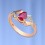 Inzet: 6 diamanten 0,04 ct. 3/5; 1 robijn 0,82ct. Val 6,0 x 5,0 mm