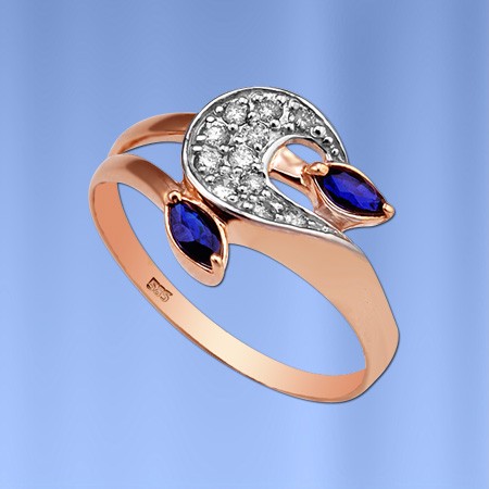 Ring van rood/wit goud 585° versierd met 11 briljant geslepen diamanten 57 0,23 ct.3/5; 2 Saffier 0,36 2/2