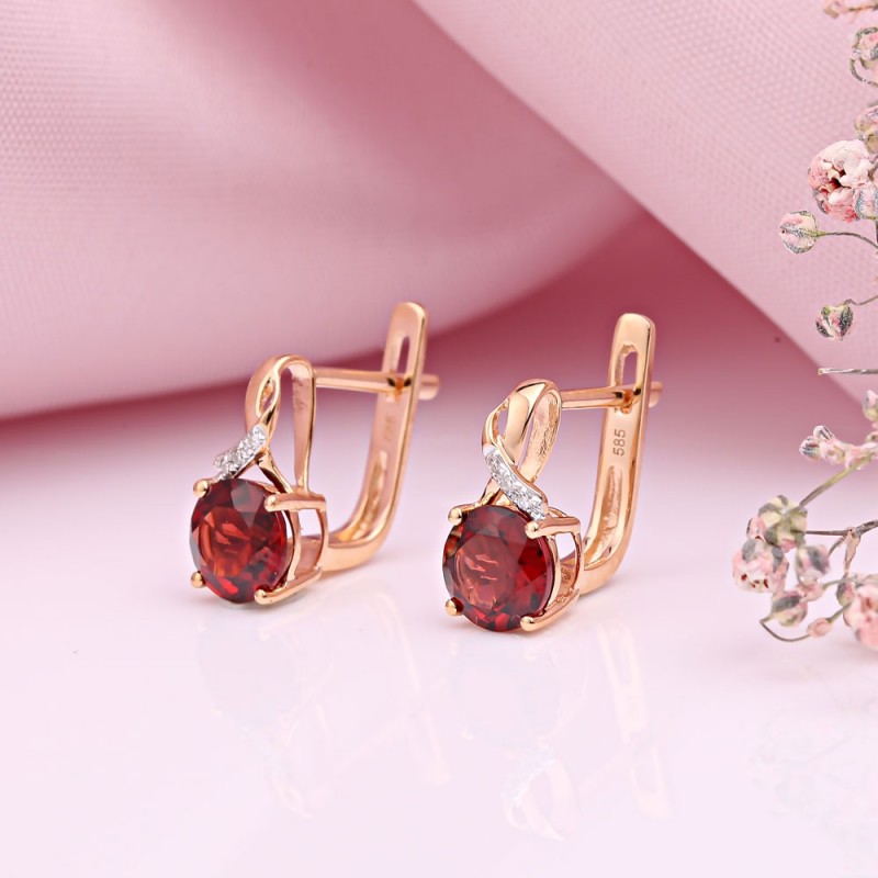 SOKOLOV Gouden oorbellen met diamanten in Duits granaat. Elegante gouden oorbellen SOKOLOV gemaakt van 585 rood/wit goud met diamanten en granaat. Witgoud benadrukt de schoonheid van diamanten op een bijzondere manier! Ze kunnen van generatie op generatie worden doorgegeven als een familiestuk.