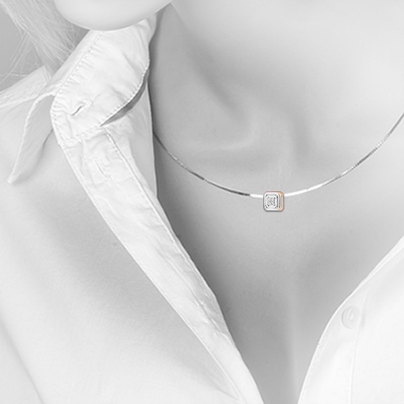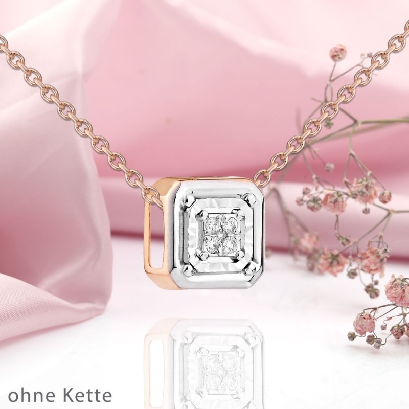 Gouden hanger met diamanten. Een charmante, elegante 14k rood- en witgouden runnerhanger versierd met fonkelende diamanten. De witgouden zetting benadrukt vooral de waardigheid en schoonheid van de diamant. Deze prachtige hanger verfrist elke outfit, benadrukt de schoonheid van de hals en voegt een vleugje romantiek en mysterie toe aan het beeld.