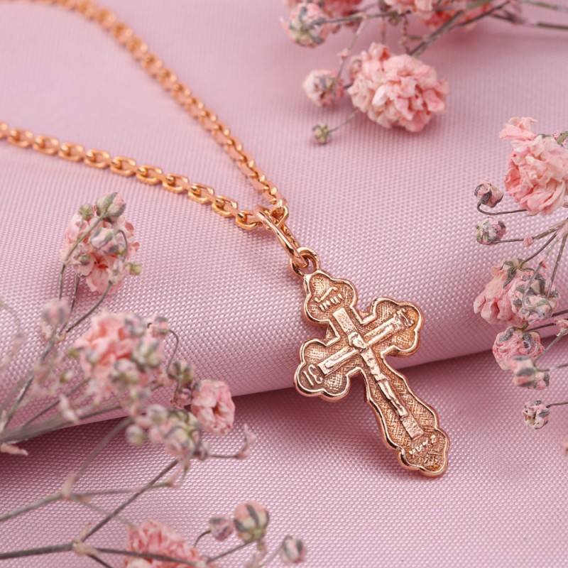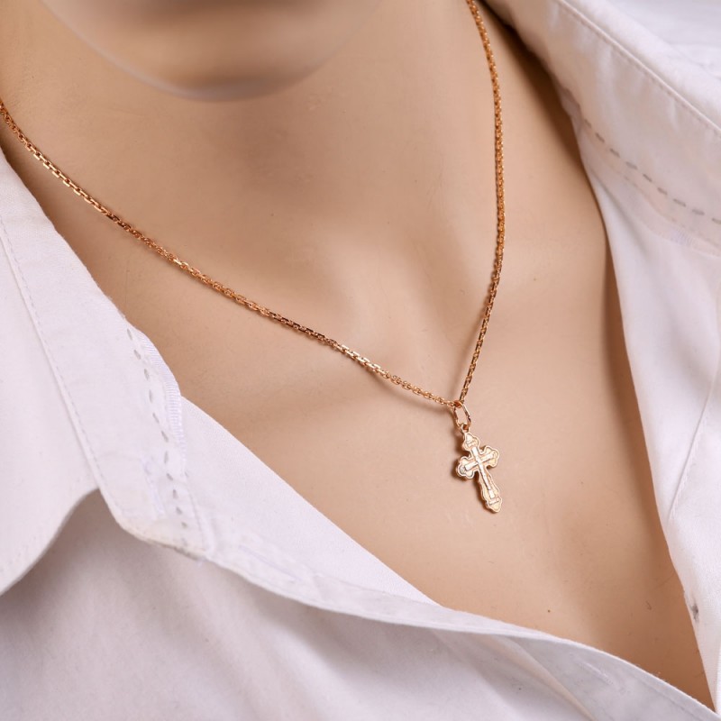 Ketting van verguld 925 zilver met een kruis hanger! Op de achterkant is een inscriptie gegraveerd: "Bewaren en bewaren". Diamantgeslepen ankerweven.