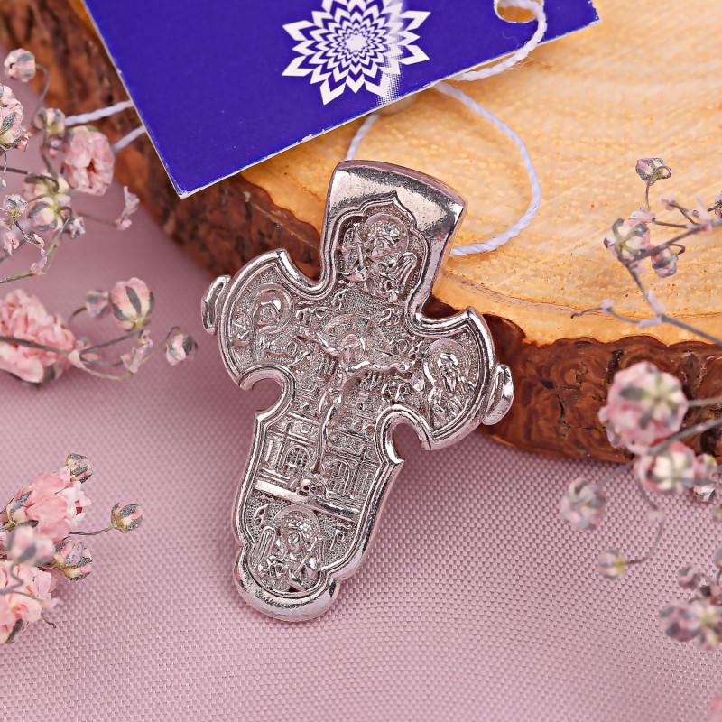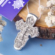 Zilveren kruis met kruisbeeld van 925 sterling zilver, met gerhodineerd oppervlak! Op de achterkant is de inscriptie gegraveerd: "Save and conserve" Krast niet tijdens het dragen.