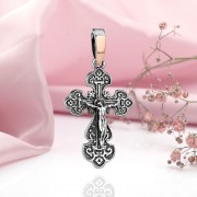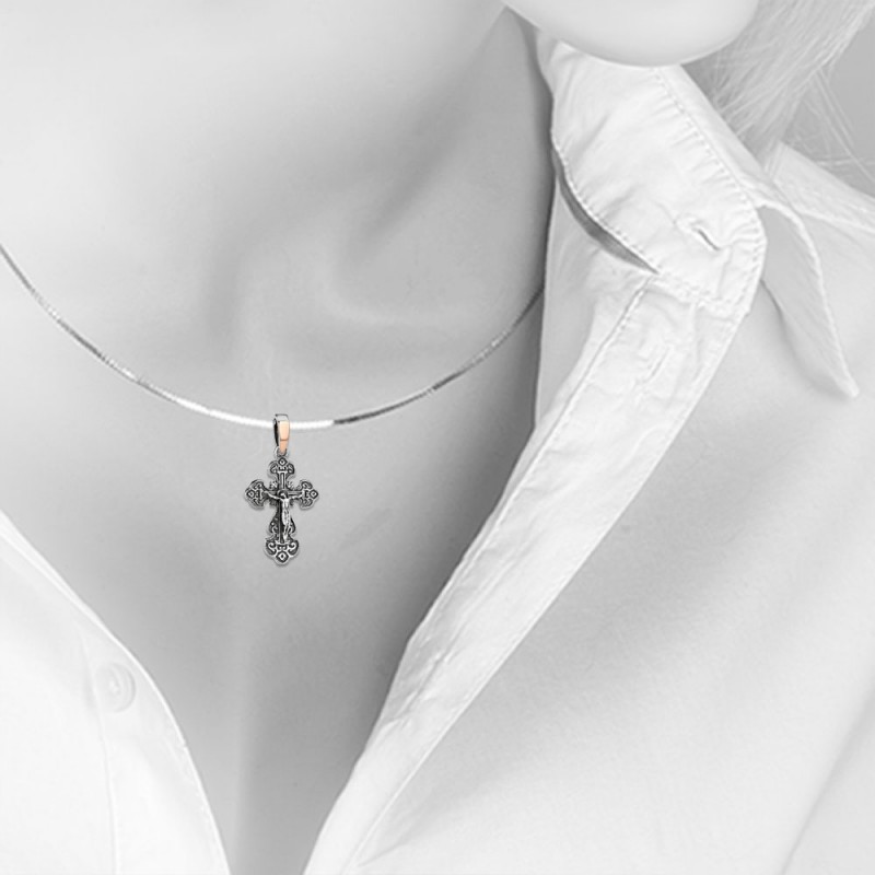 Zilveren borstkruis met een kruisbeeld van gouden inzetstuk en zwart 925 zilver met het opschrift "Bewaren en bewaren"! Krast niet tijdens het dragen.