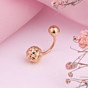 Navelpiercing 585 roodgouden piercing met diamantgeslepen balletje en balletje met spiegeloppervlak! Rood Russisch goud 585°.