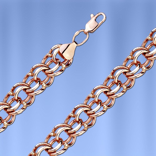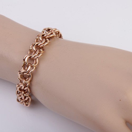 Russische roodgouden armband. Massief gouden armband in Bismarck-vlecht gemaakt van 585 rood goud - een klassiek sieraad met krachtige uitstraling en tijdloze elegantie. Het Bismarck-vlechtwerk kenmerkt zich door zijn dichte, stabiele structuur, waardoor de armband volume, sterkte en een opvallende uitstraling krijgt.