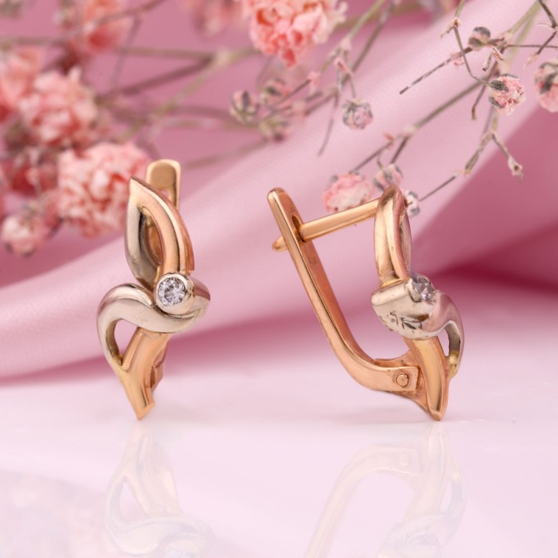 Prachtige oorbellen van wit/roségoud 585 staal, versierd met zirkonia. Deze oogverblindende oorbellen zullen je verbazen met schoonheid en elegantie.