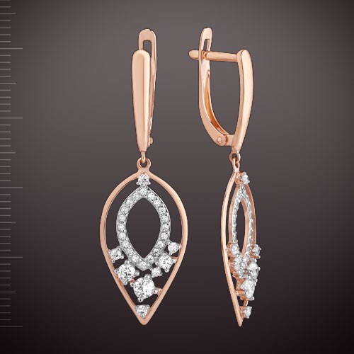 Oorbellen gemaakt van Russisch rood/wit goud 585° met fianieten