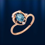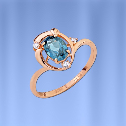 Een expressieve en delicate ring van rood goud met sappige London topaas en lieflijke fonkelende zirkonia's.